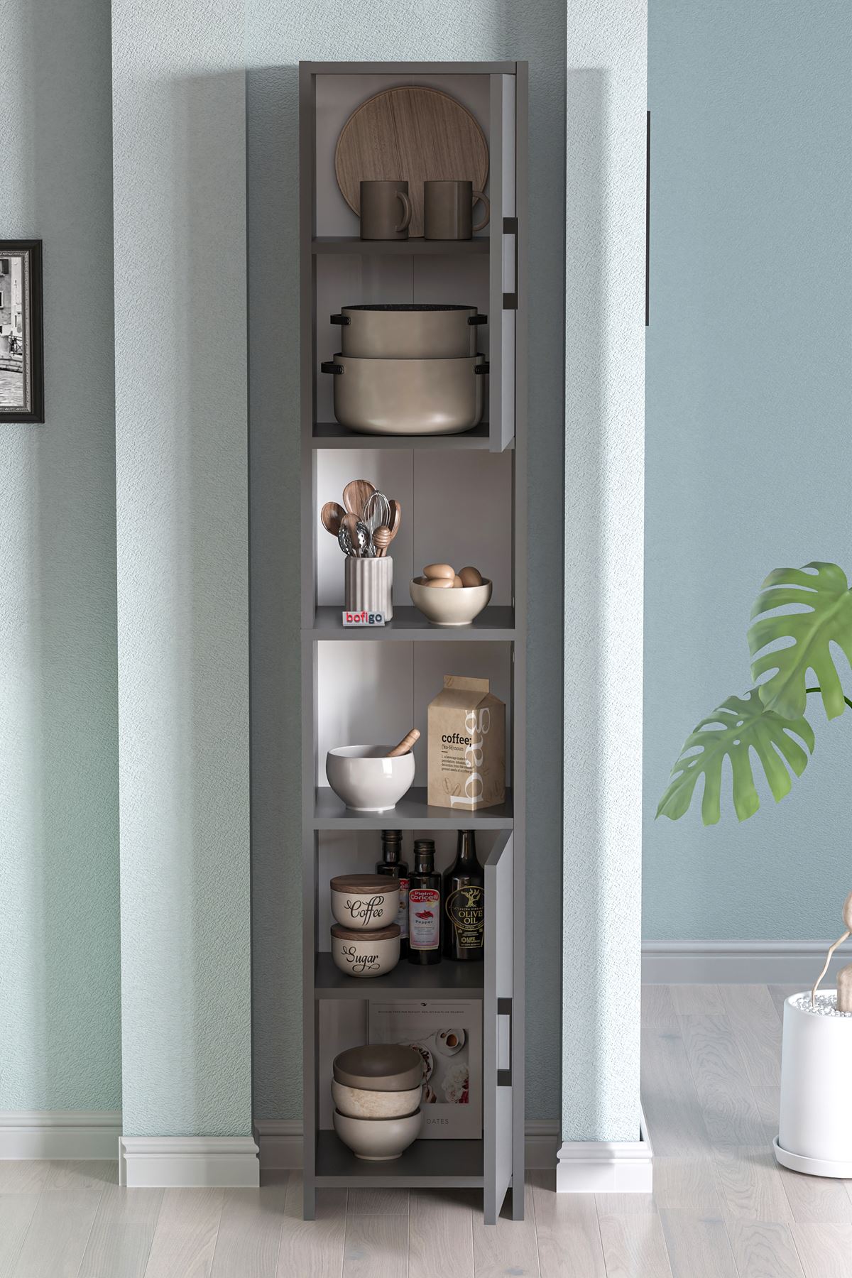 Görsel amaçlı objeler ürüne dahil değildir. 2 Kapaklı 6 Bölmeli Çok Amaçlı Dolap kullanım kolaylığı ve modern görüntüsü sayesinde evinize şıklık katar.