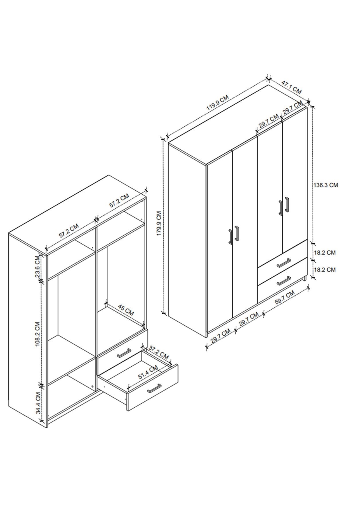 4 Kapaklı 2 Çekmeceli 5 Raflı Gardırobumuzun kurulum şeması paket içerisinde yer almaktadır.