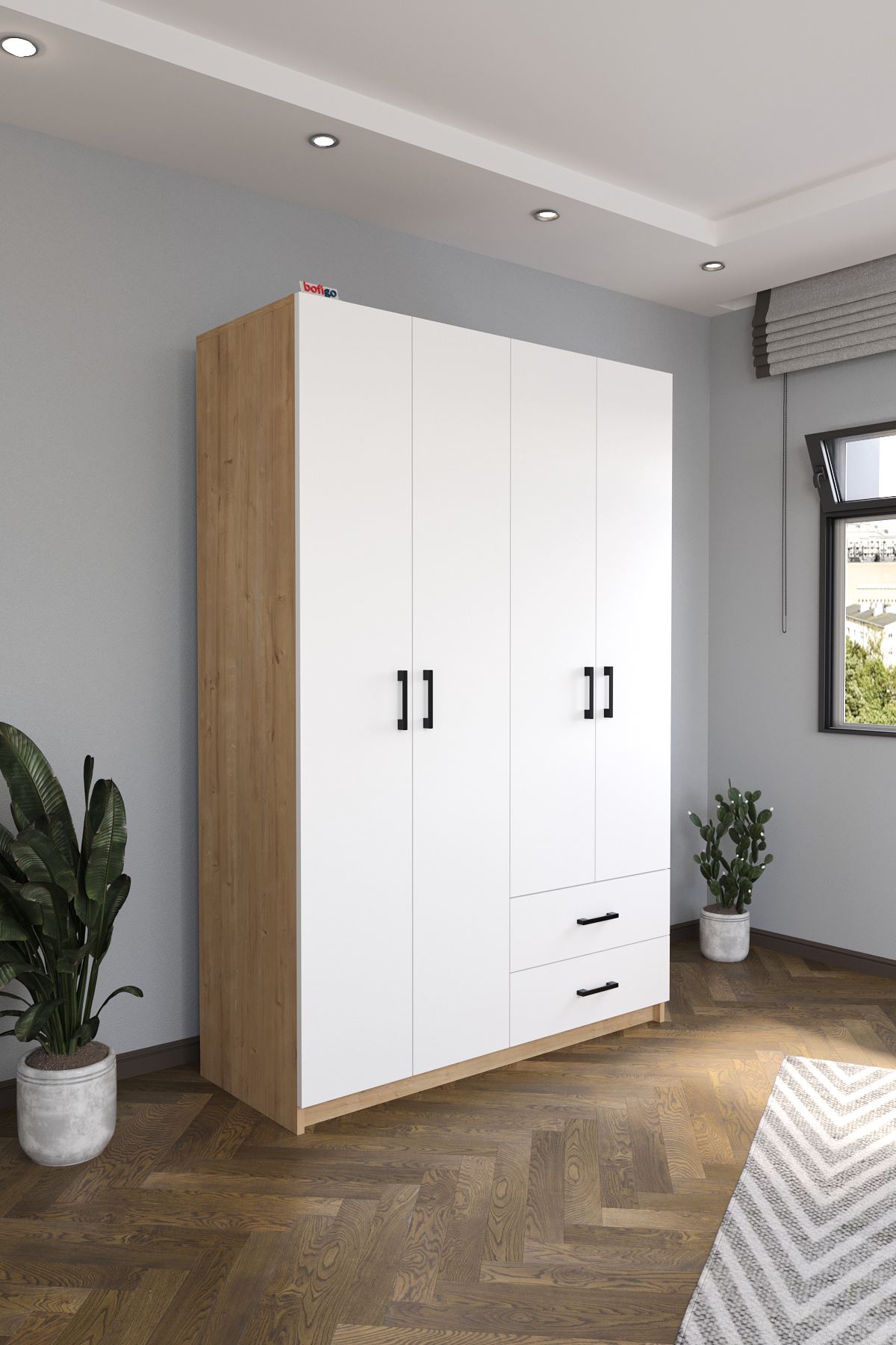 Bofigo 4 Kapaklı 2 Çekmeceli 5 Raflı Gardırop kullanım kolaylığı ve modern görüntüsü sayesinde evinize şıklık katar.