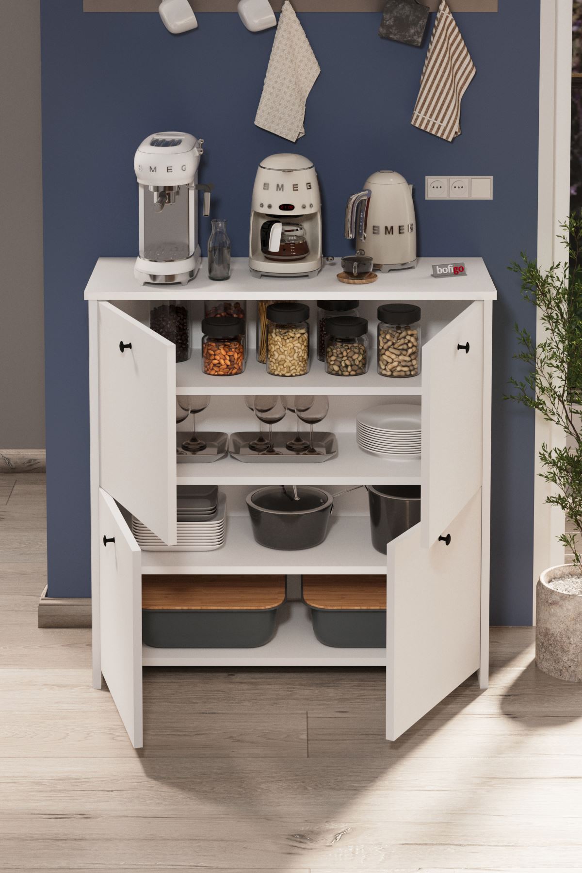 Bofigo 4 Kapaklı Dolap 4 Bölmeli Çok Amaçlı Dolap Mutfak Dolabı Banyo Dolabı Kiler Tetra Beyaz