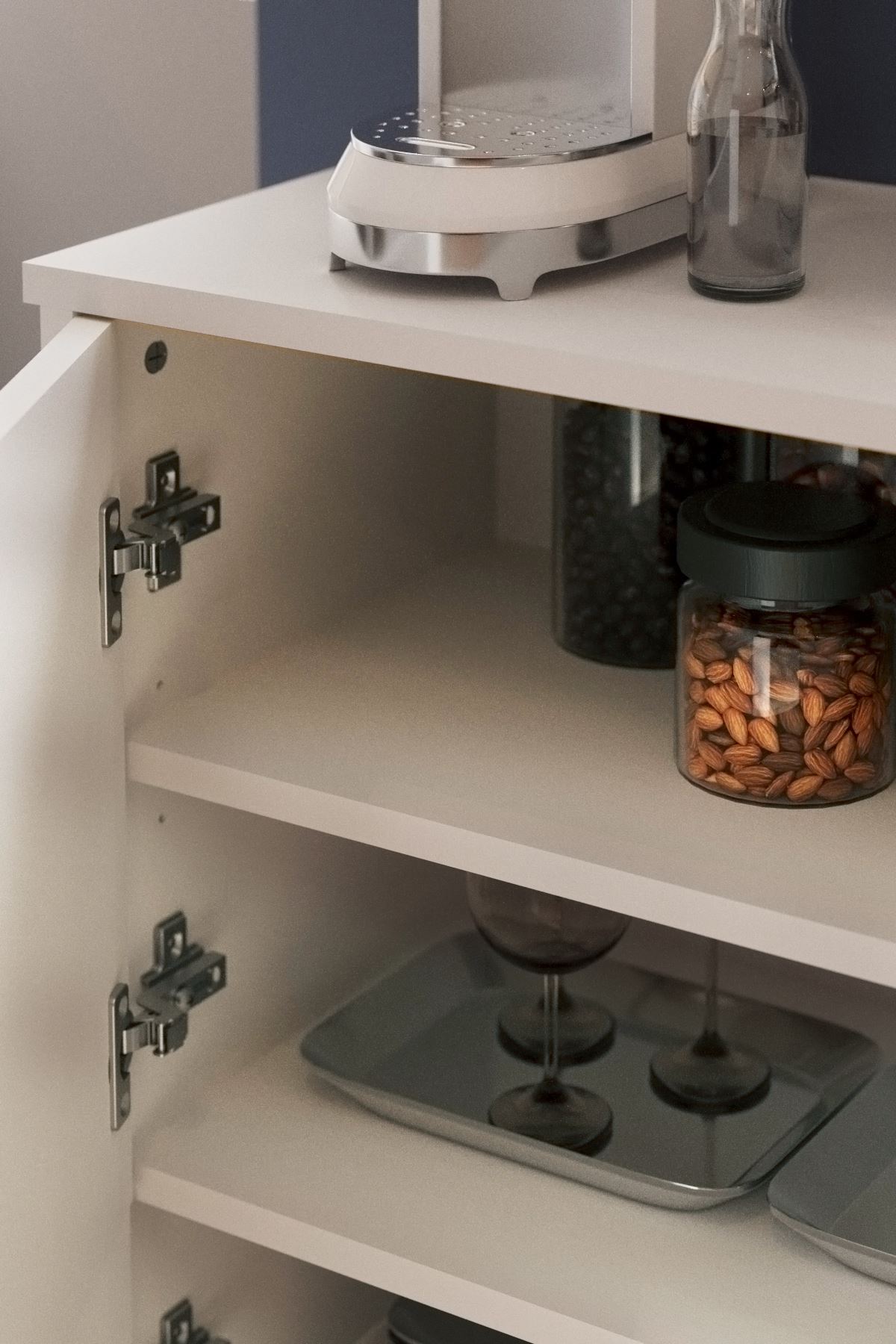 •⁠ ⁠Raflarda ve kapaklarda 18 mm kalınlığında 1. sınıf yonga levha kullanılmıştır.