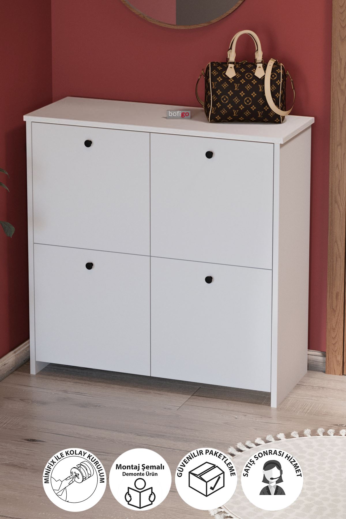 Bofigo 4 Kapaklı Ayakkabılık 4 Bölmeli Ayakkabılık Çok Amaçlı Dolap Tetra Beyaz