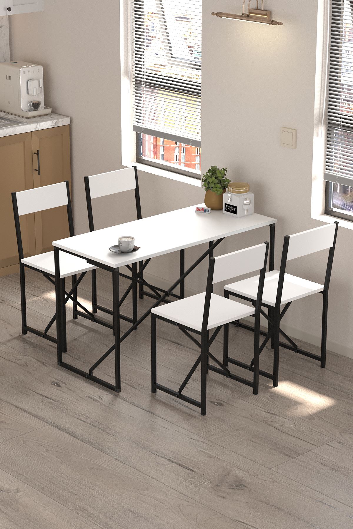 Bofigo 4lü Mutfak Seti Mutfak Masa ve Sandalye Seti Balkon Masası Cafe Seti BulutModern tasarımı ve sağlam yapısıyla Bofigo Mutfak Masa ve Sandalye Seti, evinizin havasını değiştiriyor. Hem dekoratif hem fonksiyonel olan bu masa seti, özel kolisi içinde demonte olarak gönderilmektedir. Ürün içeriğinde 1 adet masa ve 4 adet sandalye bulunmaktadır.