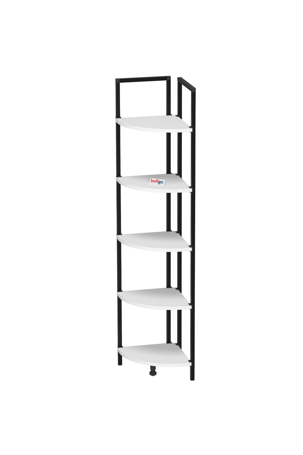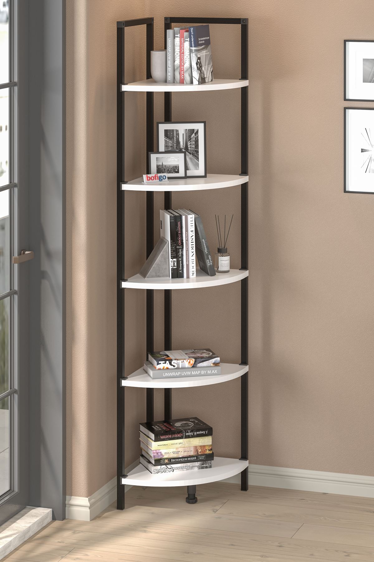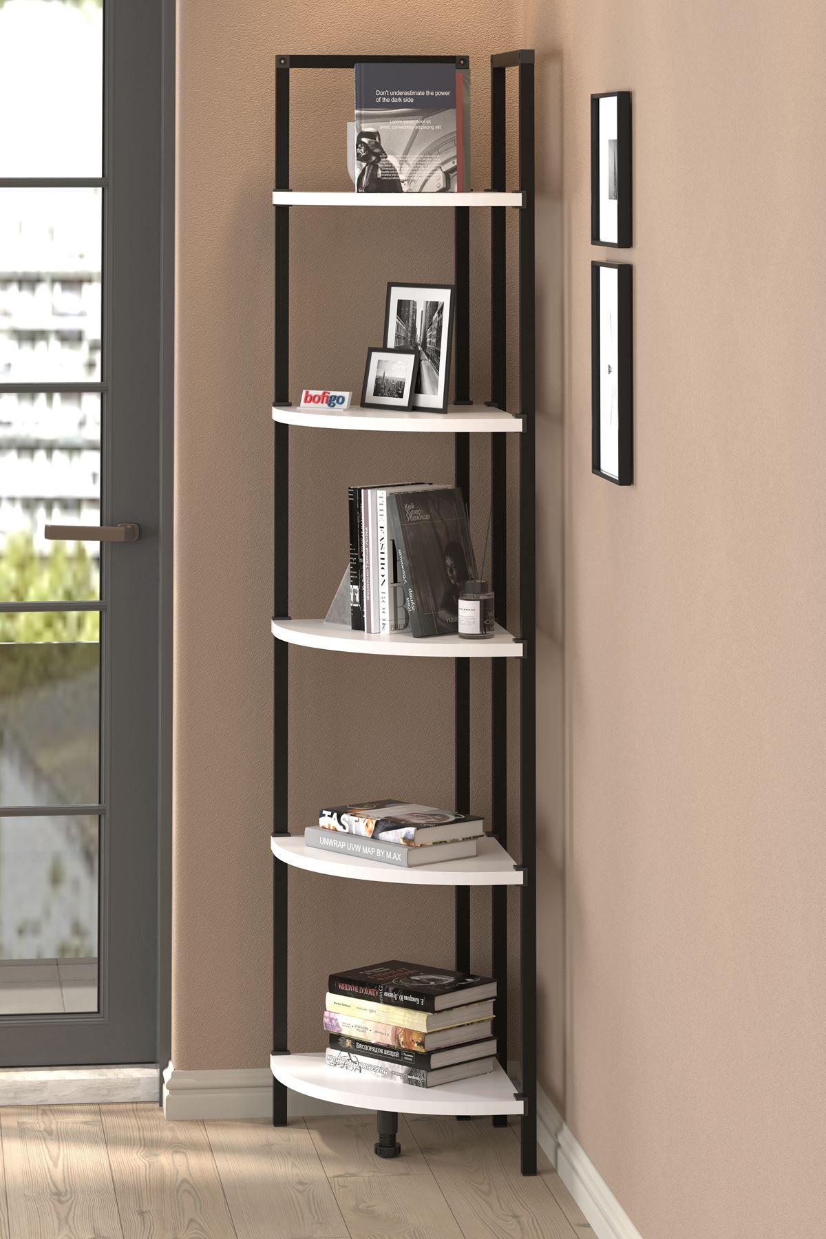 Bofigo 5 Raflı Metal Köşe Kitaplık Rafı Dekoratif Aksesuar Rafı Noyan