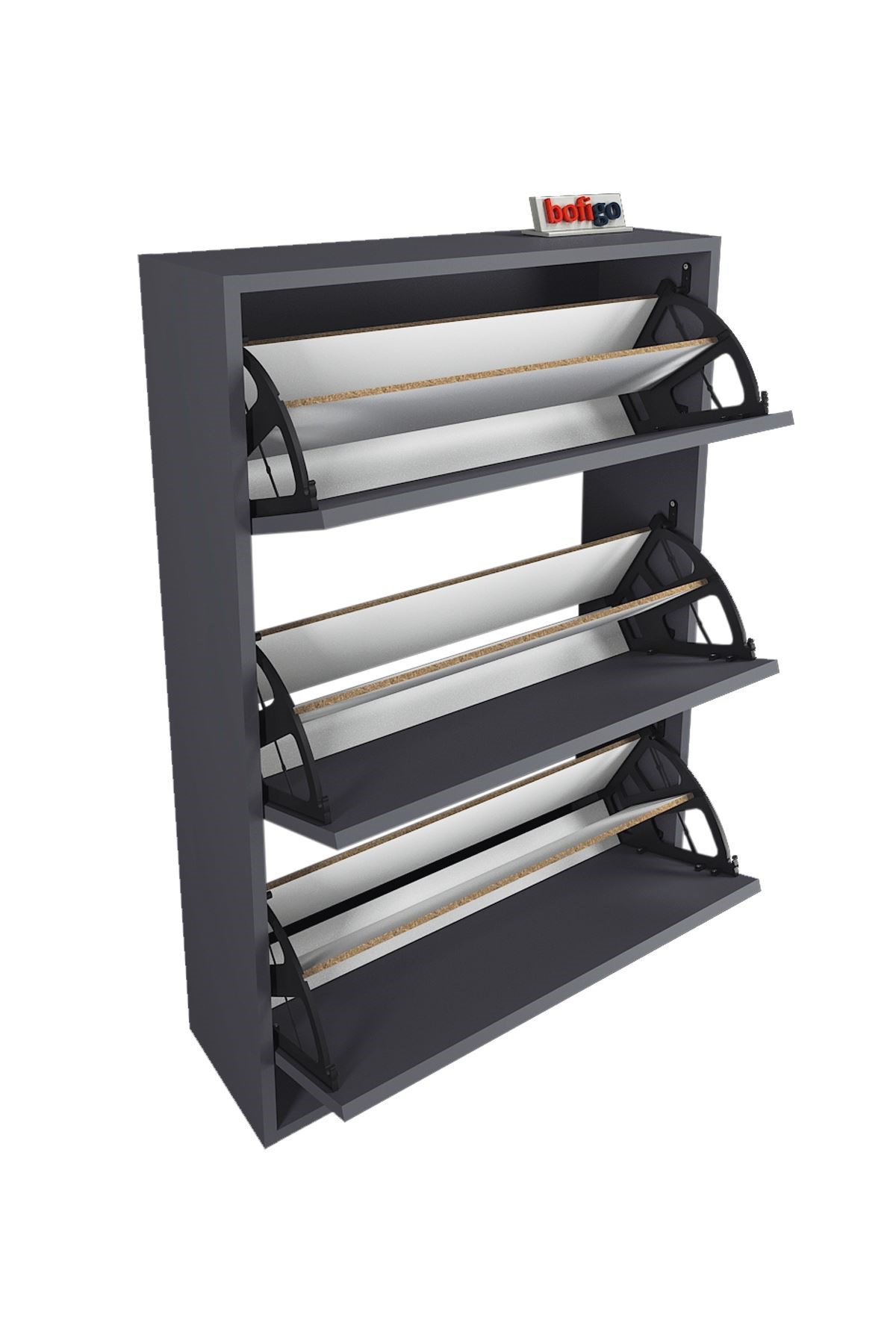 Bofigo Düşer Kapak Ayakkabılık, ergonomik ölçüleri ve fonksiyonel yapısıyla alan tasarrufu sağlarken, geniş depolama hacmi ile de kullanım kolaylığı sağlar.