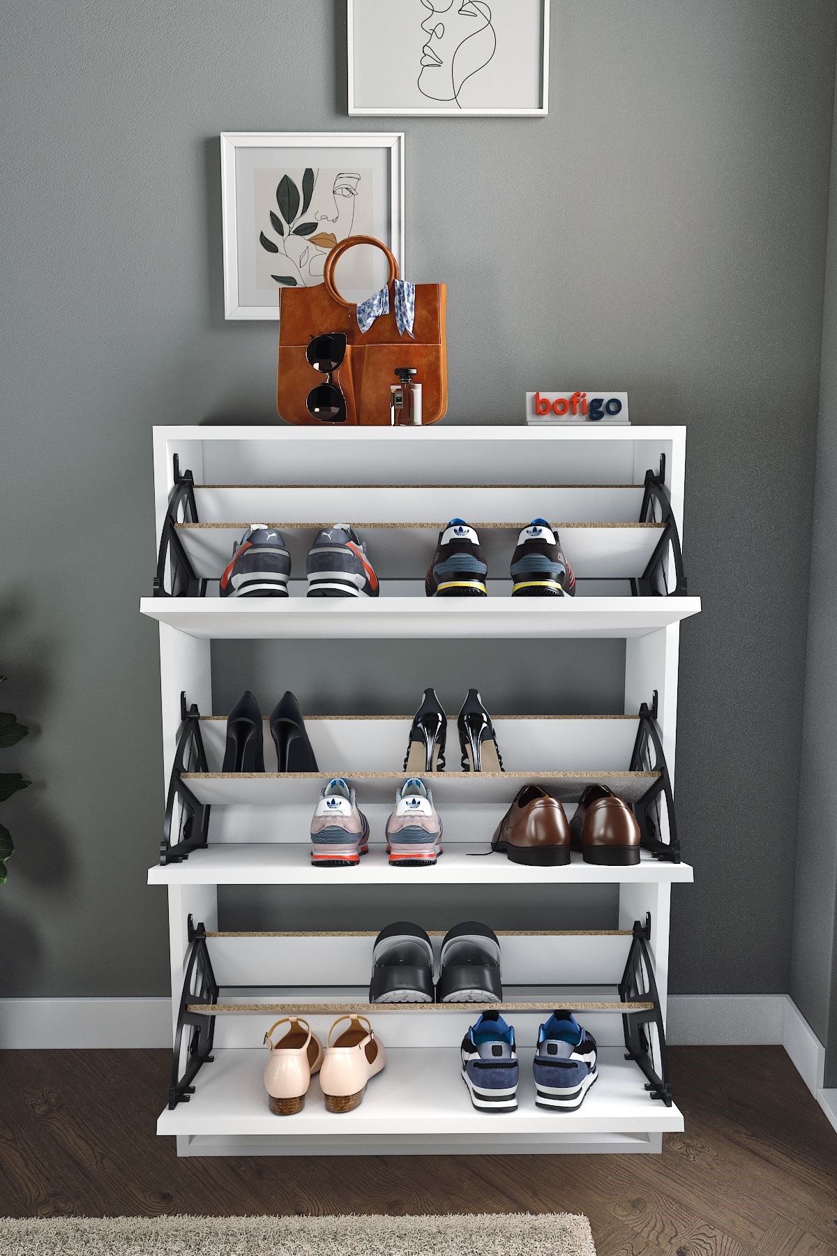 Bofigo Düşer Kapak Ayakkabılık, ergonomik ölçüleri ve fonksiyonel yapısıyla alan tasarrufu sağlarken, geniş depolama hacmi ile de kullanım kolaylığı sağlar.