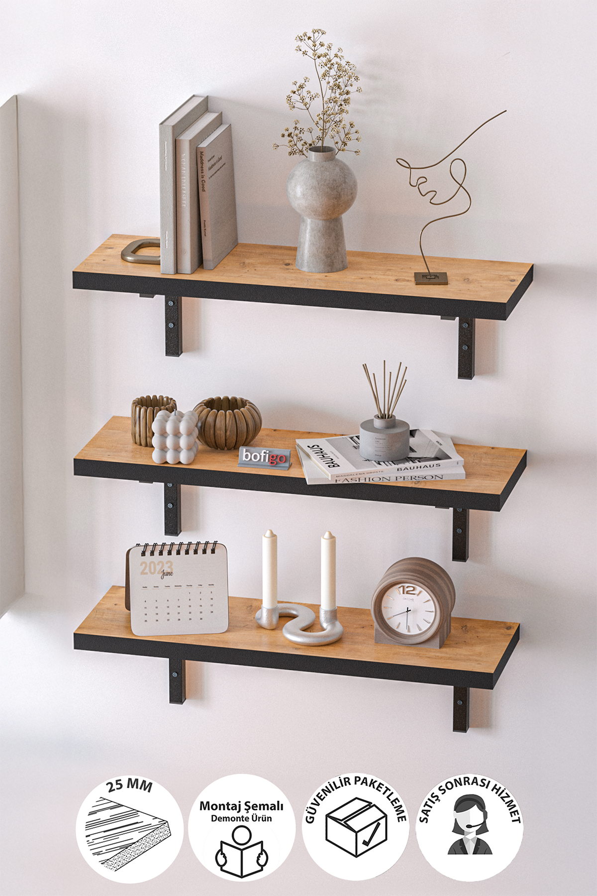 3 adet olarak özel kolisi içinde demonte olarak sevk edilir.Kitaplık Rafımızın yüzeyinde 25 mm kalınlığında 1. Kalite yonga levha kullanılmıştır.Rafımızın metal kısımlarında 1. Kalite sağlam profil kullanılmıştır. Paslanma yapmaz, çizilmeye dayanıklı elektrostatik toz boya ile boyanmıştır.TSE, Avrupa birliği en, ISO 9001 ve FSC sertifikalarına sahiptir.E1 standartları dahilinde, kanserojen madde içermez.Ürünün tüm aksamları, Bofigo fabrikasında üretilmektedir. Bu sebeple tüm üretim aşamaları kontrolümüz altındadır.Kurulum şeması ve vida seti koli içerisinde yer almaktadır.Çok kolay bir şekilde kurulumunu gerçekleştirebilirsiniz.Ürün ölçüleri görsellerde detaylı bir şekilde paylaşılmıştır.Görsel amaçlı objeler ürüne dahil değildirBofigo Duvar Rafı Uçan Raf, kullanım kolaylığı ve modern görüntüsü sayesinde evinize şıklık katar.
