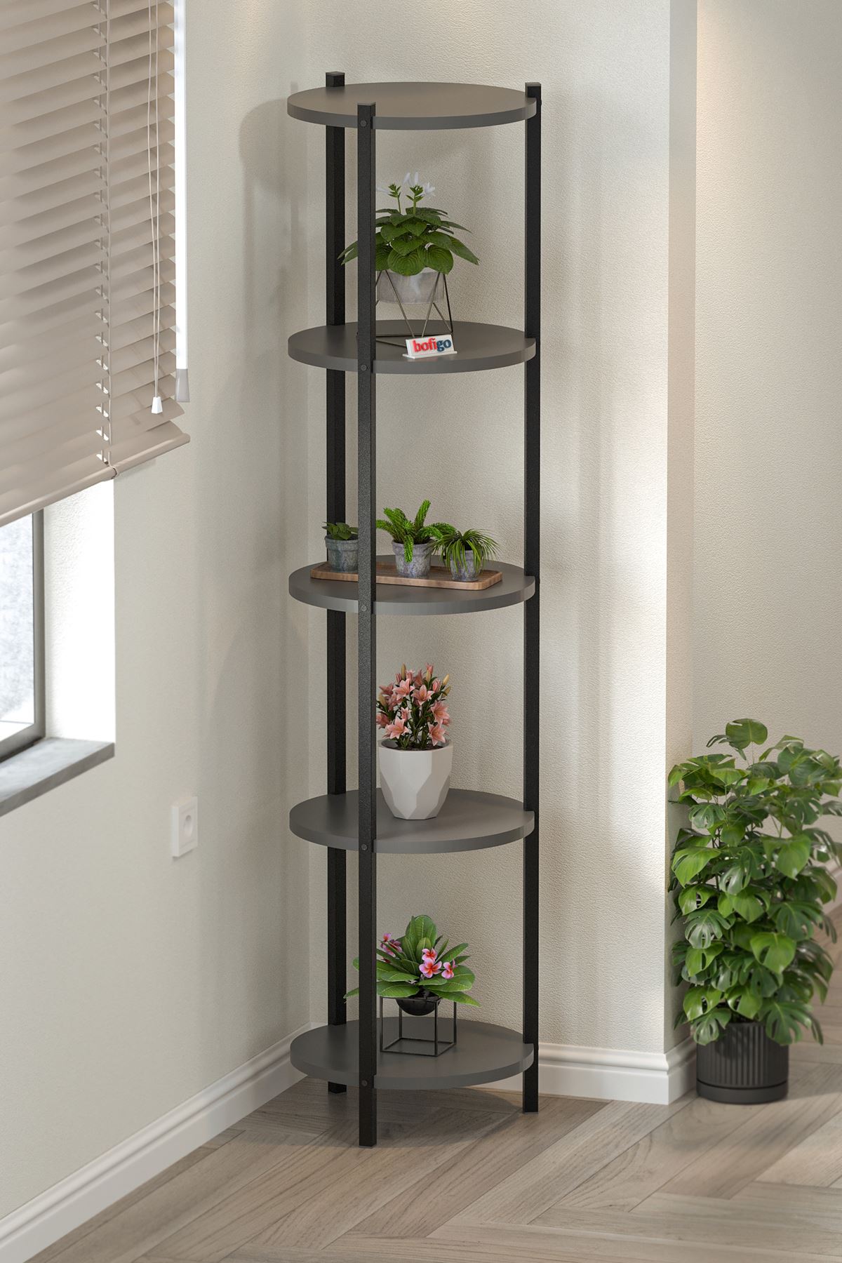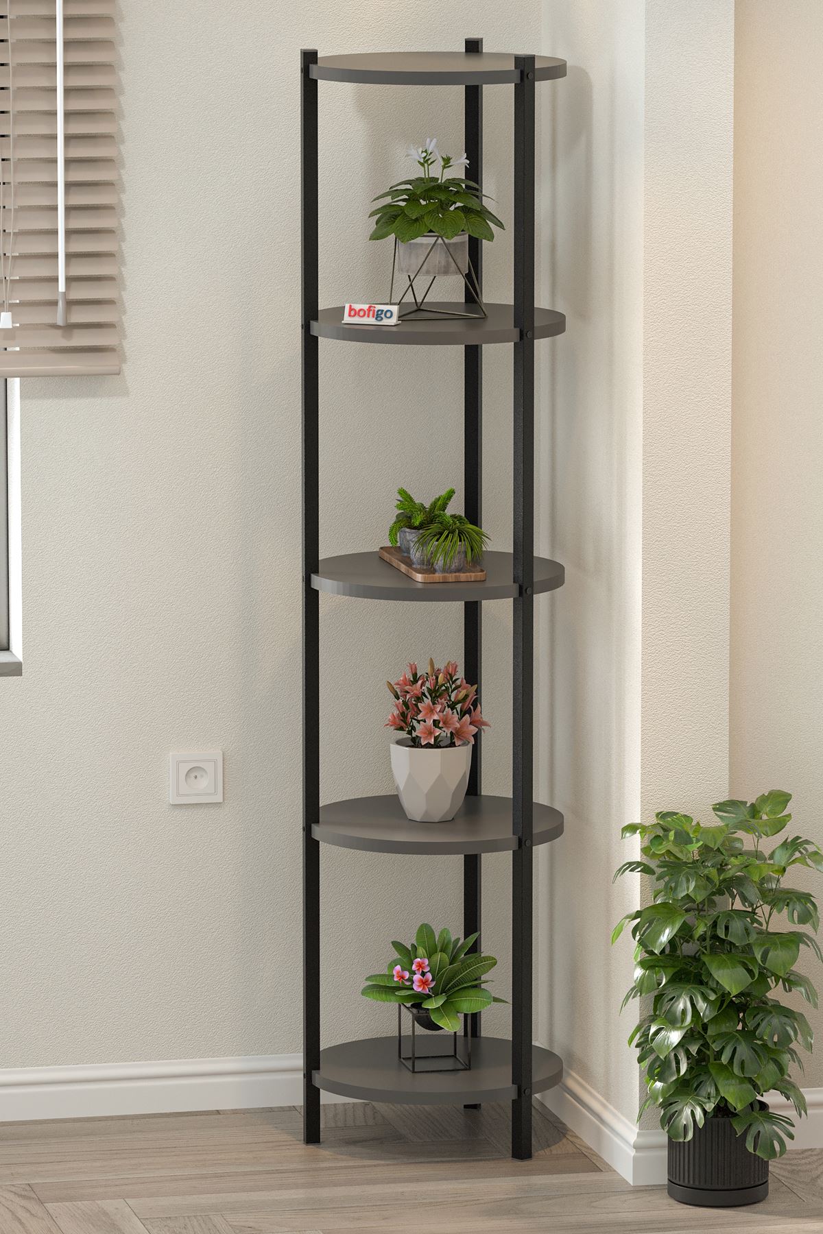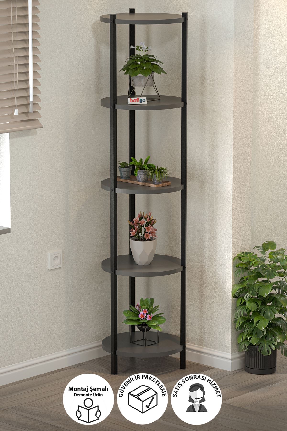 Bofigo 5 Raflı Çiçeklik Rafı Saksılık Standı Dekoratif Aksesuar Rafı Saksılık Lale Antrasit