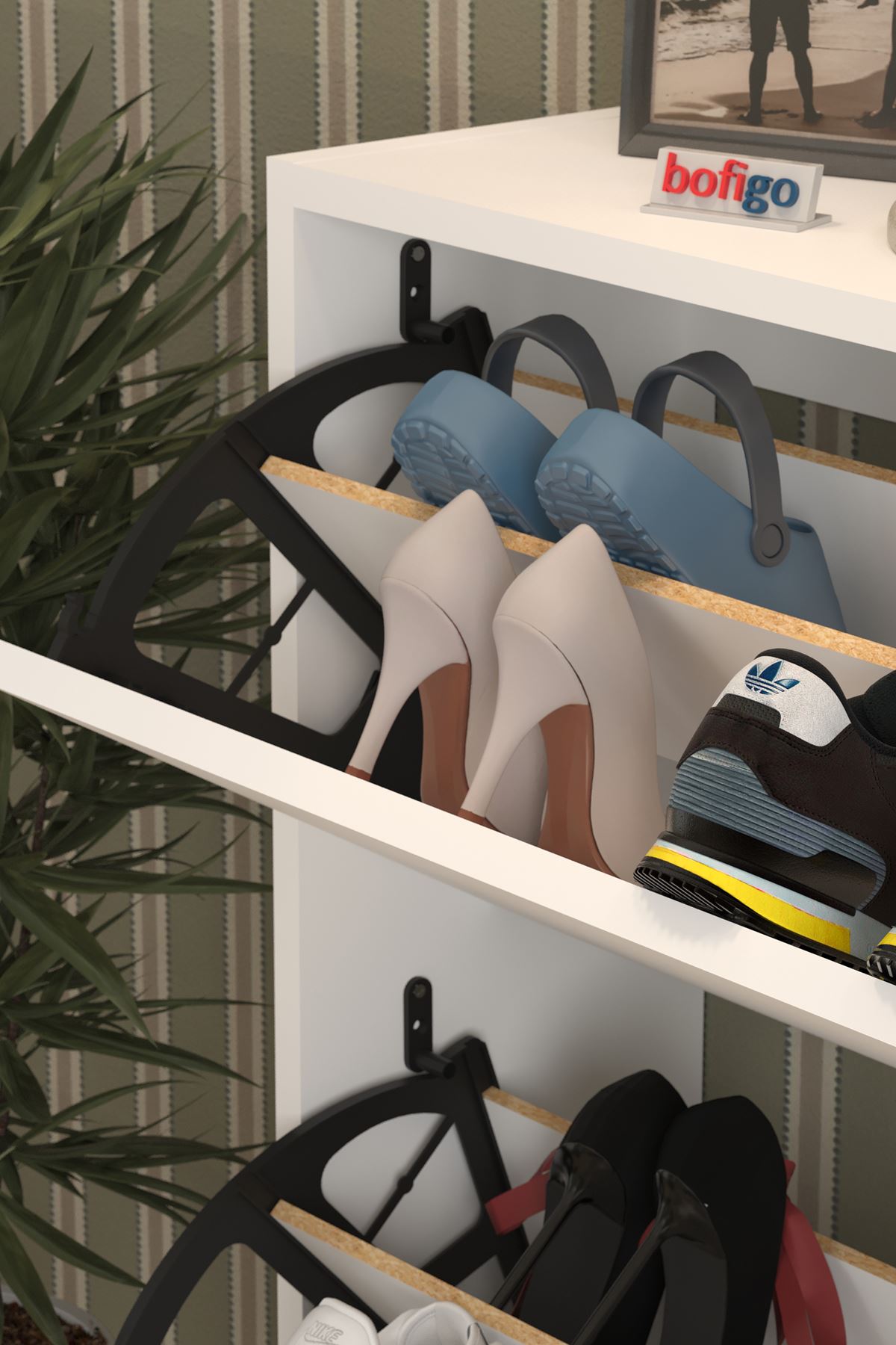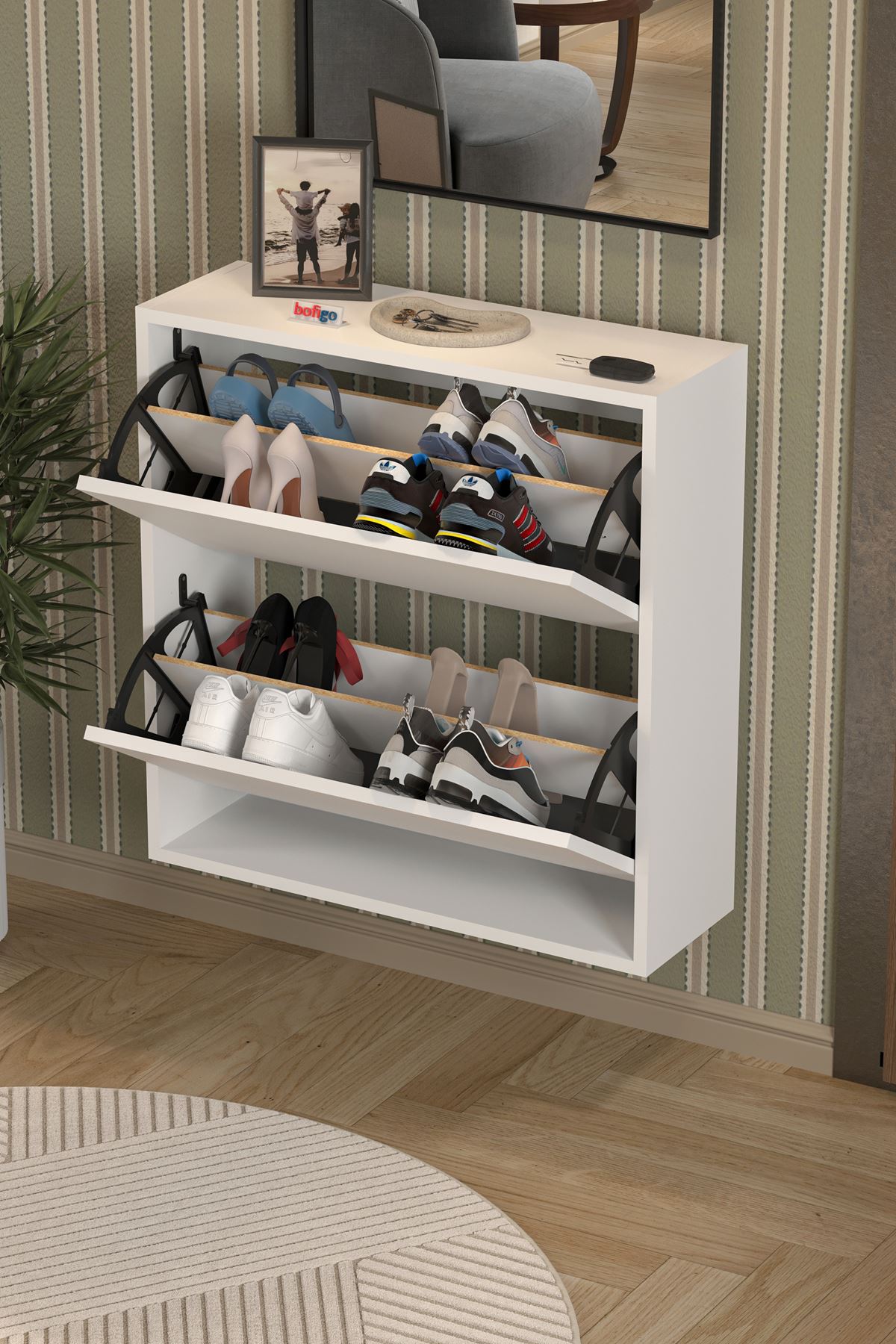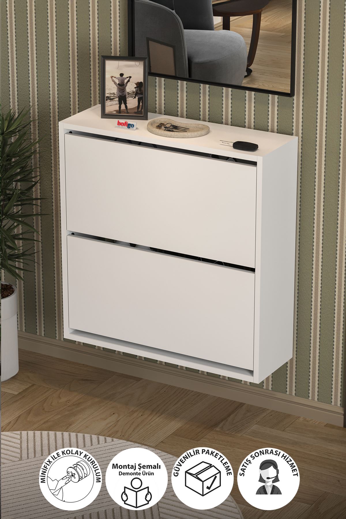 Bofigo Düşer Kapak Ayakkabılık 2 Bölmeli Kayar Raflı Ayakkabılık Duvara Monte Ayakkabılık PeriModern tasarımı ve sağlam yapısıyla Bofigo Düşer Kapak Ayakkabılık evinizin havasını değiştiriyor. Hem dekoratif hem fonksiyonel olan bu ayakkabılık özel kolisi içinde demonte olarak gönderilmektedir.