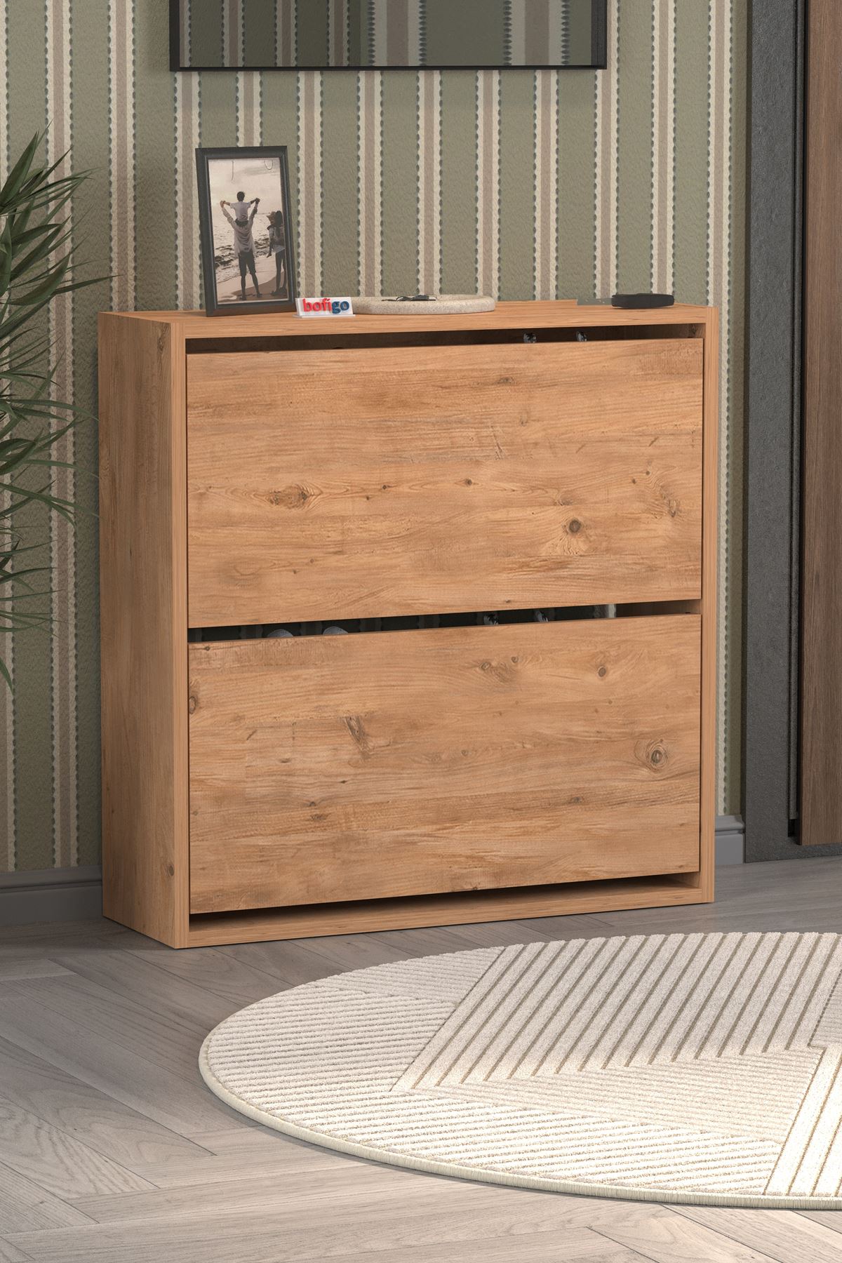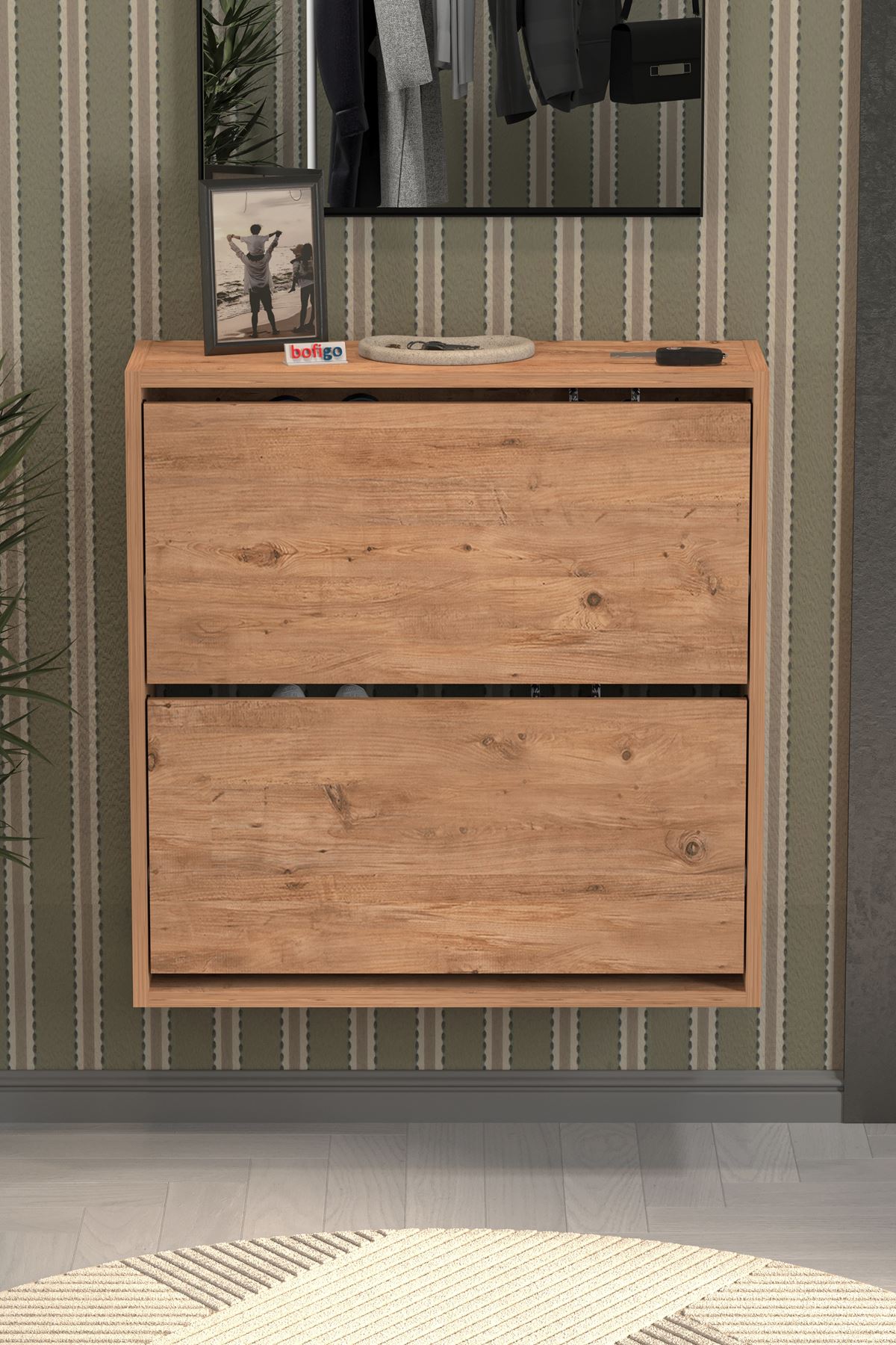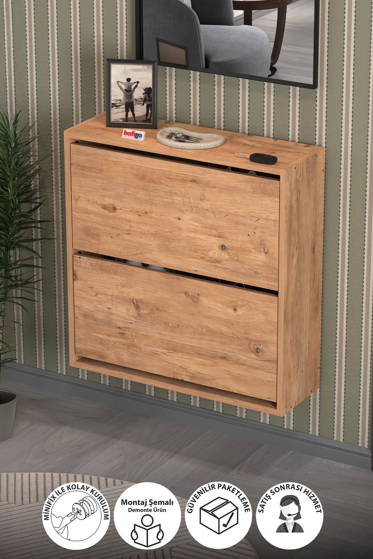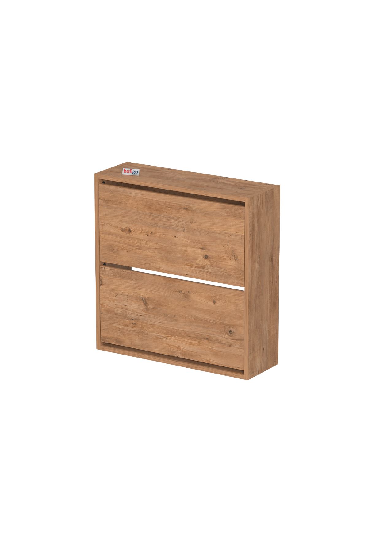 Bofigo Düşer Kapak Ayakkabılık 2 Bölmeli Kayar Raflı Ayakkabılık Duvara Monte Ayakkabılık Peri Çam